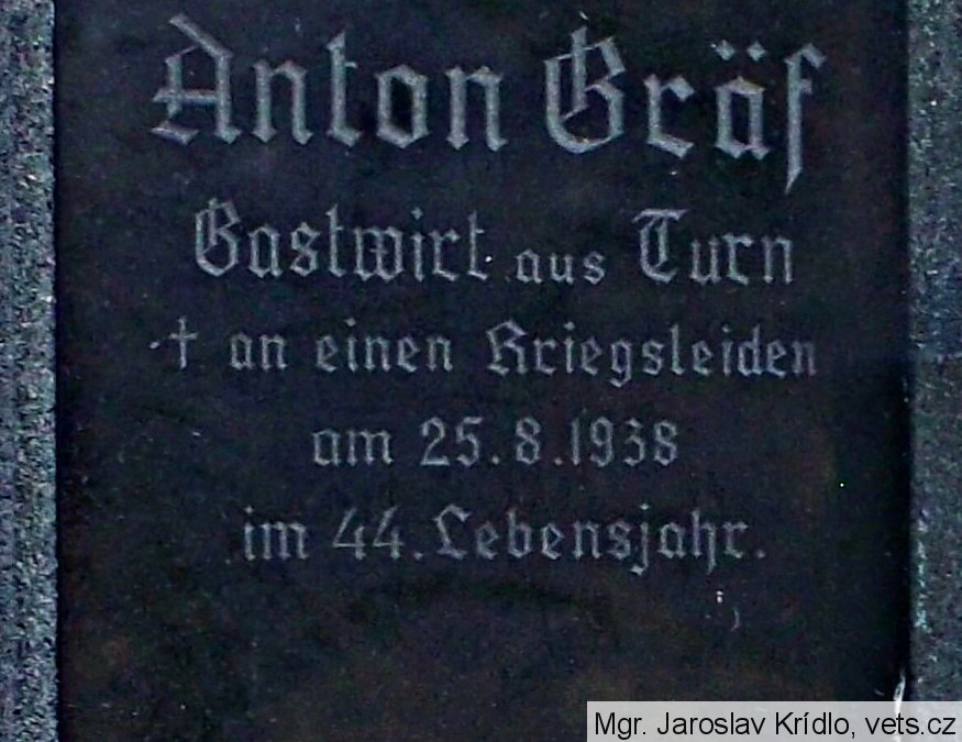 hrob hostinského z Trnovan, součásti Teplic, zemřelého následkem válečných útrap z 1. světové války