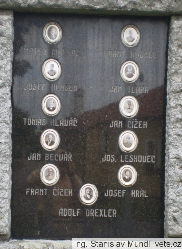 MATĚJ MALKUS, JOSEF VLÁŠEK, TOMÁŠ HLAVÁČ, JAN BEČVÁŘ, FRANT. ČÍŽEK, FRANT. KOŠTEL, JAN TLAPA, JAN ČÍŽEK, JOS. LESKOVEC, JOSEF KRÁL, ADOLF DREXLER