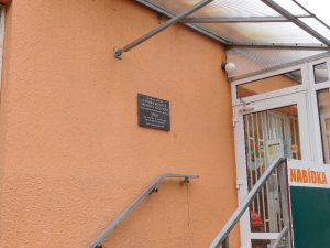 Umístění: Žilina, Antonína Milfaita, na budově obchodu Jednota COOP, nalevo nad schodištěm u vchodu do obchoduNápis: