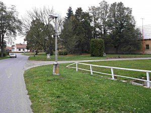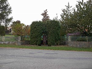 Umístění: Ruda, Nádražní, náves, na rozcestí Mlýnské a Nádražní, za zeleným porostem, vlevo od hasičské zbrojnice