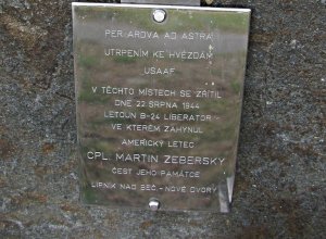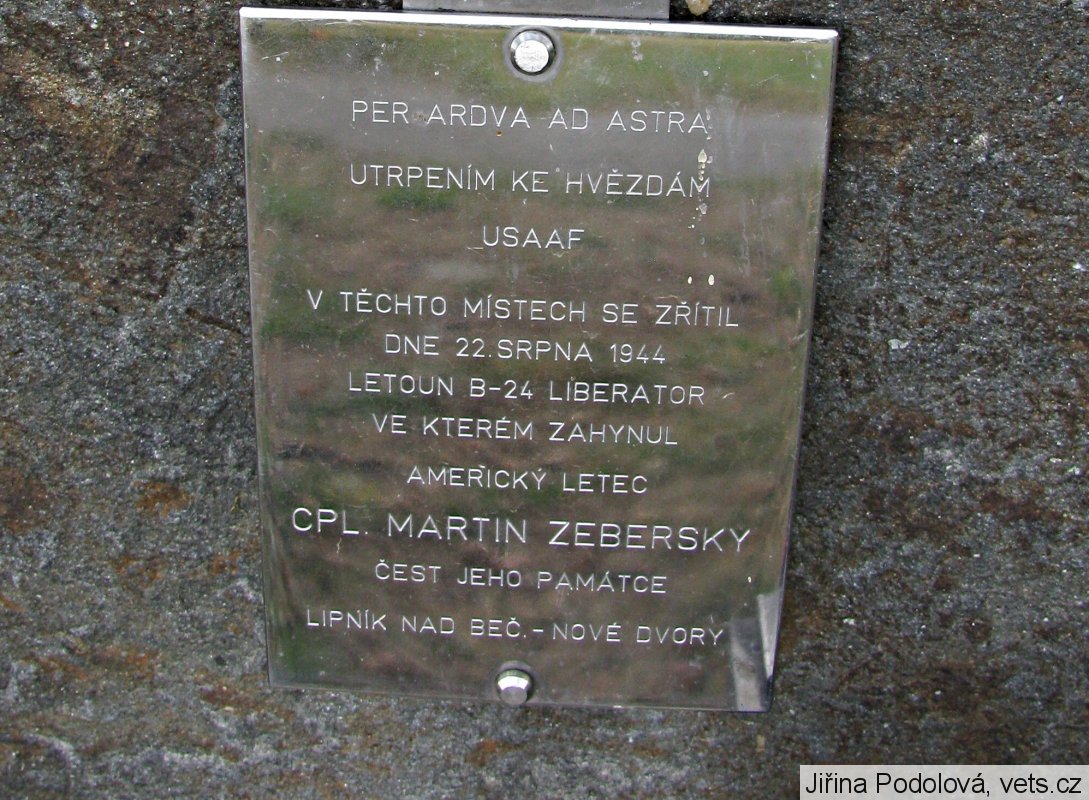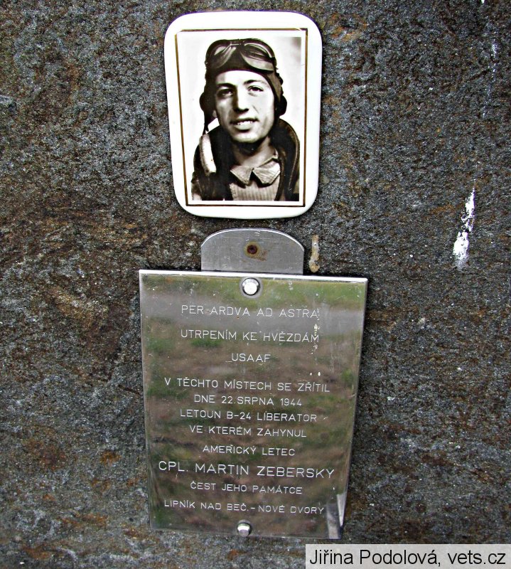 Martin Zeberský, pilot, datum narození a hodnost-neuvedeno, †22.8.1944, Nové Dvory nad Bečvou, příčina smrti-nehoda, armáda-USA, státní příslušnost-USA, národnost-polská, poznámka-Americký bombardér Liberator se vracel z bombardování rafinerie minerálních olejů v prostoru Blenchhammer - jih v Polsku. 9 členů posádky opustilo letoun po skončení akce, v letounu zůstal jen přední střelec Zeberský, který uhořel. Pohřben byl v Lipníku nad Bečvou (pomník padajícího Ikara nechal vyrobit Svaz hostinských v Lipníku). V roce 1948 odvezen a pohřben na Národním hřbitově na Pinelown National Cementary, Loug Island, N.Y. na přání rodičů.