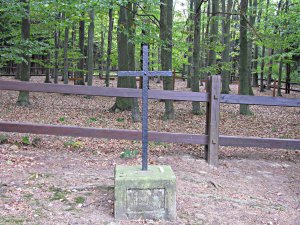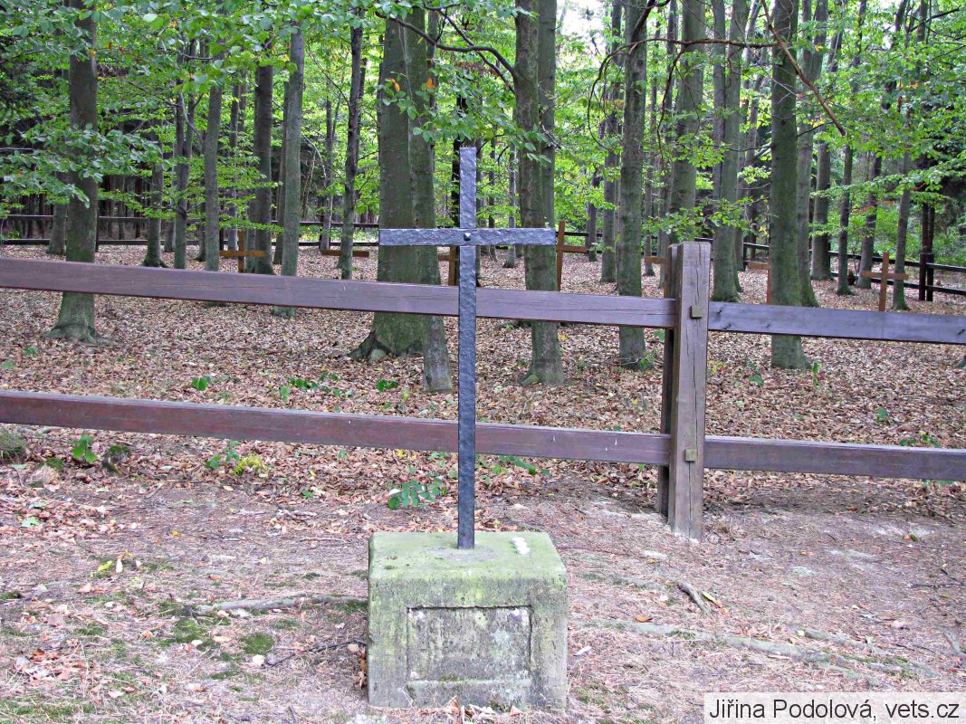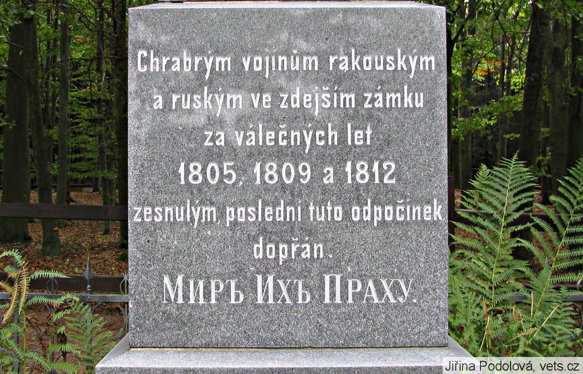 Všichni ti, kteří ve veselíčském zámku během napoleonských válek zemřeli, byli na velkých vozech dopravování na Zámecký kopec, kde byli hromadně pochováni. Na tomto místě, kde svůj poslední odpočinek nalezlo přes 700 vojínů, byl postaven dřevěný kříž, později železný. Roku 1905, při příležitosti stého výročí od založení vojenské nemocnice ve Veselíčku, byl nedaleko železného kříže, vztyčen žulový pomník. Aby obec byla ušetřena pohledu na naložené fůry mrtvých vojáků, byla od zámku až na samotné místo hromadného hrobu zřízena tzv. Nová cesta.;