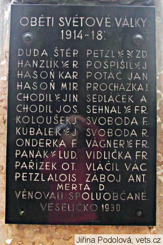 Václav Vláčil, *1.8.1895, místo narození-Veselíčko, Hranice, Morava, příslušnost-táž, hodnost-vojín 18. zeměbraneckého pěšího pluku, †22.6.1916, místo úmrtí-u Porskaja Wulka na Volyňsku v Rusku, pohřben-na bojišti, opsáno podle-matr. D.O.V. Olomouc III. u Z.V.V. Brno, tom. III., fol. 99;
