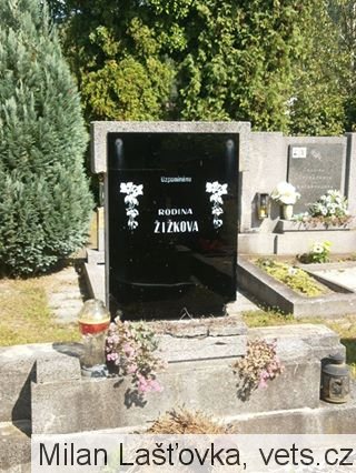poznámka: deska je připevněna zezadu na hrobu s nápisem Rodina Žižkova
