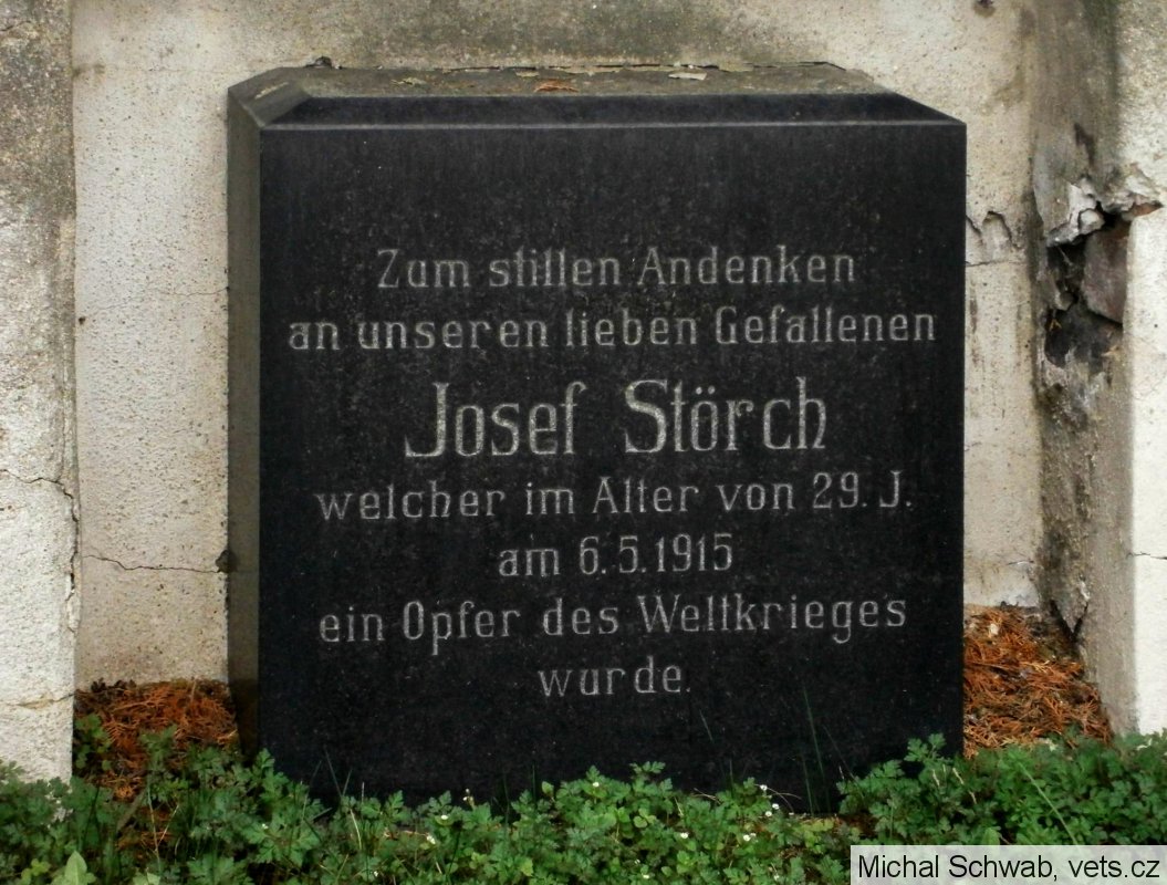 Schneider Eduard Anton: *28.9.1875, č. p. 2, Welchen bei Großpriesen, okr. Aussig (Velichov u Velkého Března, okr. Ústí n/L). Otec Eduard Schneider, matka Franziska Josefa, roz. Focke. Svobodný, rolník. LstInft., IR. Nr. 42, Rekonvaliszenten Abt. +24.3.1918 GarnSpit. Nr. 13 Theresienstadt (Terezín), zápal plic, následky polní služby. Převezen a 28.3.1918 zde pohřben. Místo nelokalizováno, patrně zrušeno.