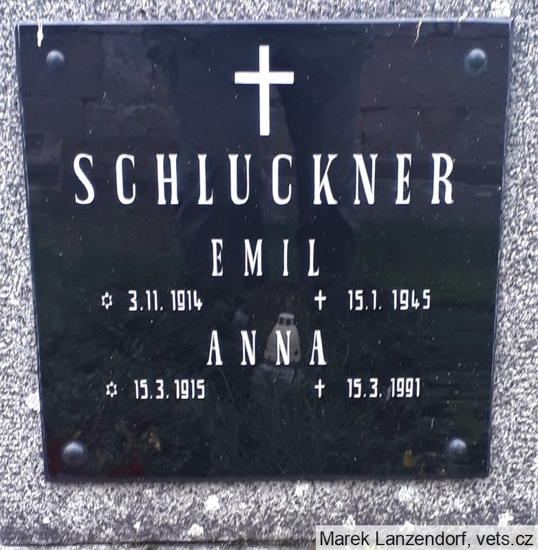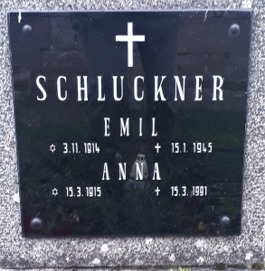 Schluckner Emil Anton, narozen 3. 11. 1914 Groß Mergthal (Mařenice). Stabsgefreiter. Zemřel 16. 1. 1945 (na kenotafu 15.1.) Pašková, okr. Rožňava, Slovensko. Pohřben podle všeho na hřbitově Hunkovce, okr. Svidník, Slovensko.
