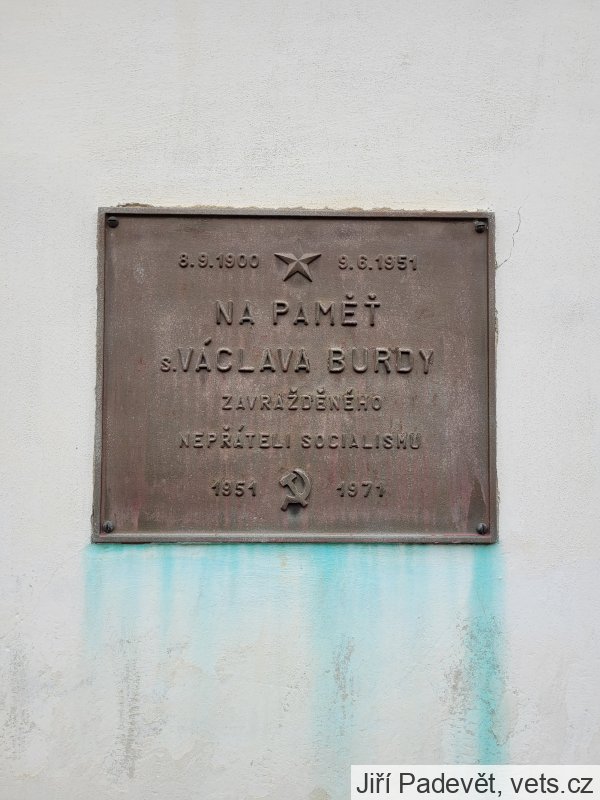 Václav Burda byl horlivým členem KSČ, který nutil sedláky z okolí ke vstupu do zemědělských družstev. 9. června 1951 byl postřelen protikomunistickým odbojářem a vojenským zběhem Františkem Slepičkou do nohy, na následky zranění zemřel v nemocnici v Táboře o dva dny později, tedy nikoliv 9. června, jak je chybně uvedeno na desce.