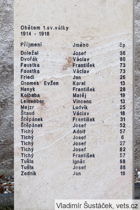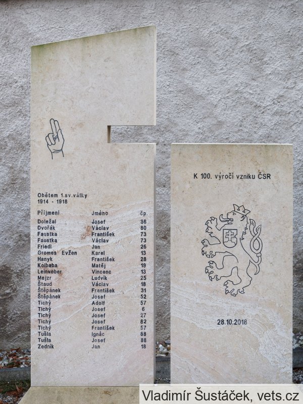 Společný pomník k uctění 21 obětí 1. světové války a ke vzniku ČSR v roce 1918 byl slavnostně odhalen a posvěcen 28.10.2018.