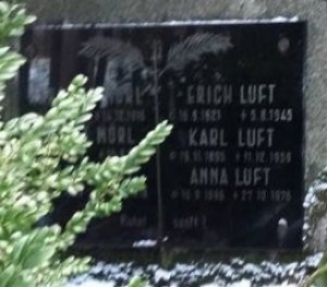 Erich Luft je pohřben na vojenském hřbitově v Chebu. Oddělení 7 řada 1 hrob 10 - 28
