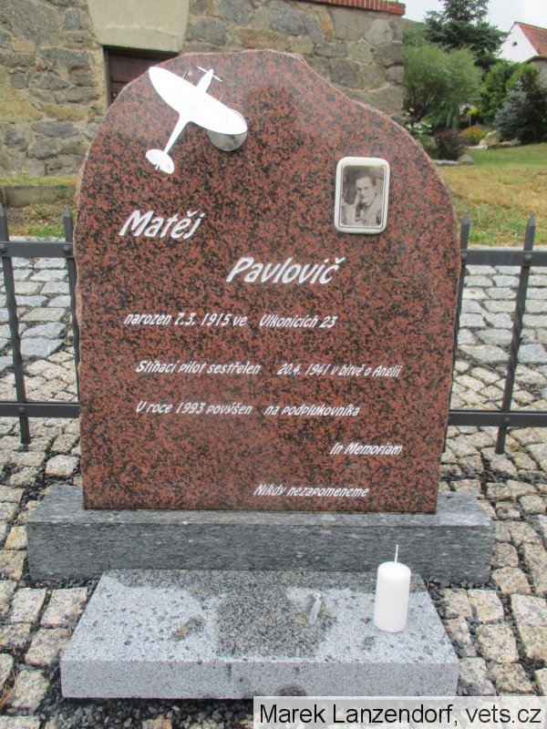Pavlovič Matěj, Sgt, 782594, 303 Sqdn, čet./R/plk., *7/3/15, Vlkovice /Prachatice/, pilot, †20/4/41 (zdroj http://www.acr.army.cz/historie/seznam-prislusniku-ceskoslovenskeho-letectva-v-raf-1940-1945-494/ )