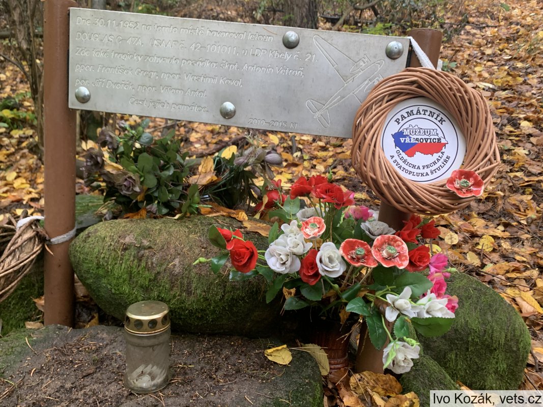Zde také tragicky zahynula posádka: kpt. Antonín Vétron,