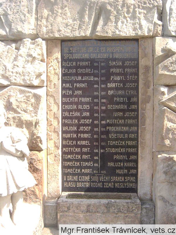 Studnička Frant. a Hulín Jan jsou v databázi legionářů vedené VHÚ, proto jsou pravděpodobně na této desce zapsáni taktéž, i když zemřeli poměrně dlouho až po návratu domů a demobilizaci v roce 1920