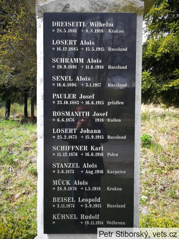 Umístění: Stará Voda (zaniklá obec), v zaniklé obci, šikmo přes silnici naproti poutnímu kostelu Sv. Anny1914 + 1918