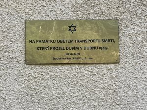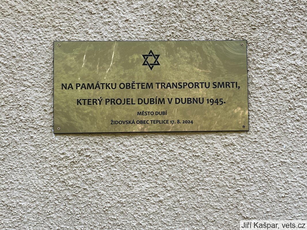 V sobotu 17. srpna byla slavnostně odhalena deska na památku obětem transportu smrti, který projel Dubím v dubnu 1945. Transport vyrazil 20. dubna 1945 z německého Öderanu. V každém z dobytčáků se tísnilo 200 osob, které se střídaly v sezení a stání. Na cestu všichni dostali misku s polévkou a některé mísy alespoň částečně nahradily ve vagonech záchody. Podle válečného nařízení vlaky nesměly stát ve stanici déle než dvacet čtyři hodin. Vlak proto vždycky zastavil v nějaké stanici, pár hodin tam zůstal a zase jel do jiné. Postupně se vlak dostal přes hranice a jednoho dne zastavil v zastávce Dubí u Teplic. V této stanici se sestry Marieta a Hana Blochovy, které pocházely z významné továrnické rodiny spojené s dubskou porcelánkou,rozhodovaly o útěku, který si nakonec rozmyslely. Věděly, že vypadají hodně nápadně. Z Osvětimi měly vyholené hlavy a bílý pruh přes oblečení jako označení vězenkyň.