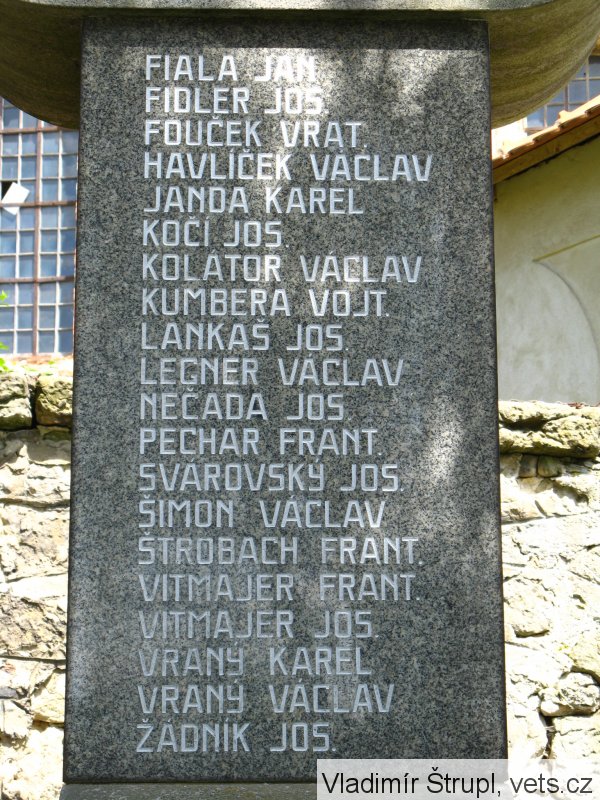 Štrobach František:*1896, Skalsko. Inft., k. k. LIR. Nr. 10, 3. Komp., padl Konstantinowka u Lucku na Volyni a pohřben Boseików na: “úbočí stránĕ u stromů”.