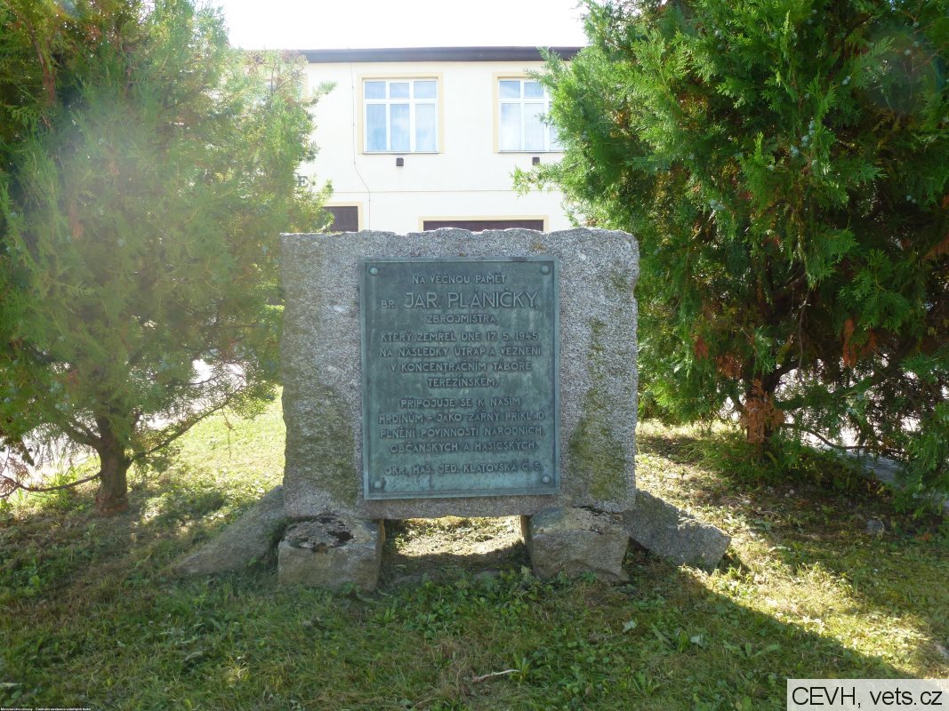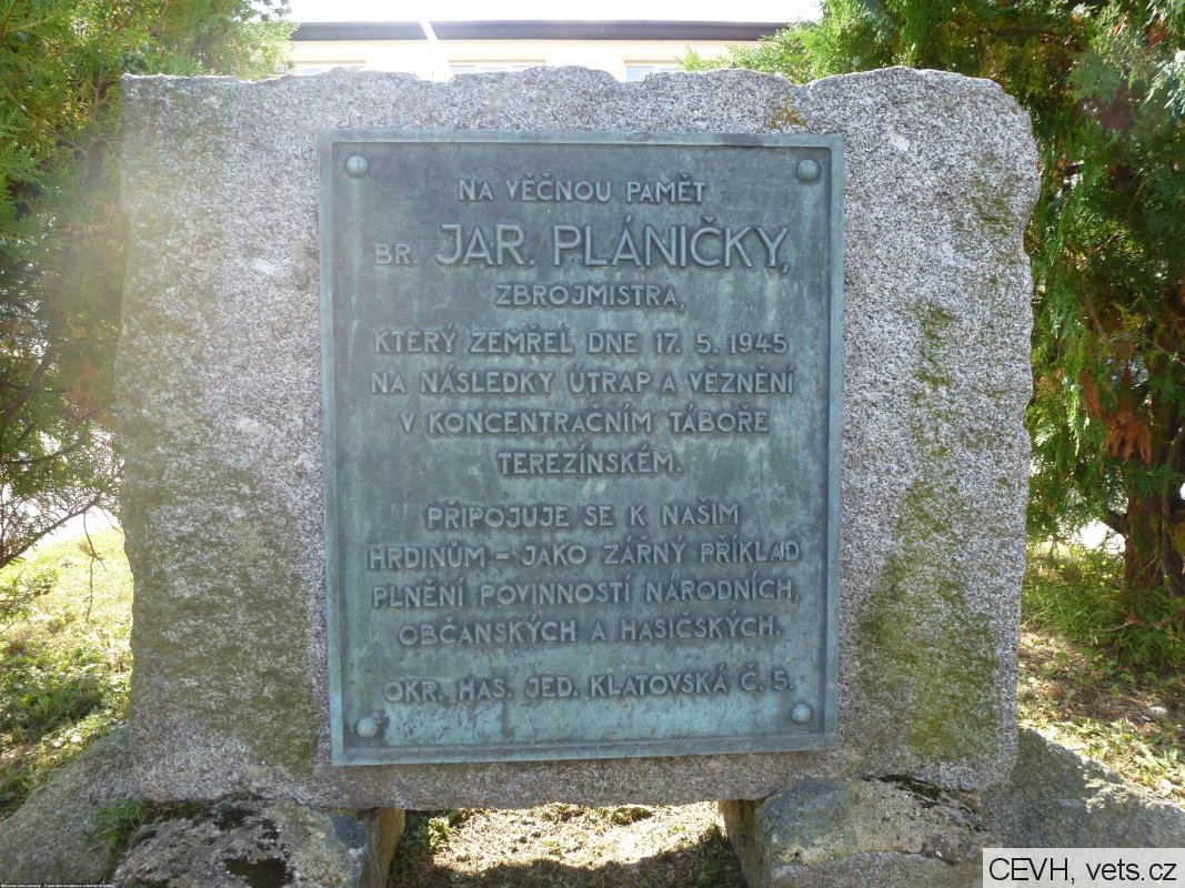 Umístění: Plánice, Kostelní 274, před hasičskou zbrojnicí, za plotemNápis: