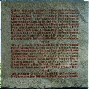 Kromě C. a K. armády jsou na pomníku uvedeni též příslušníci jednotek hesenských a saských.