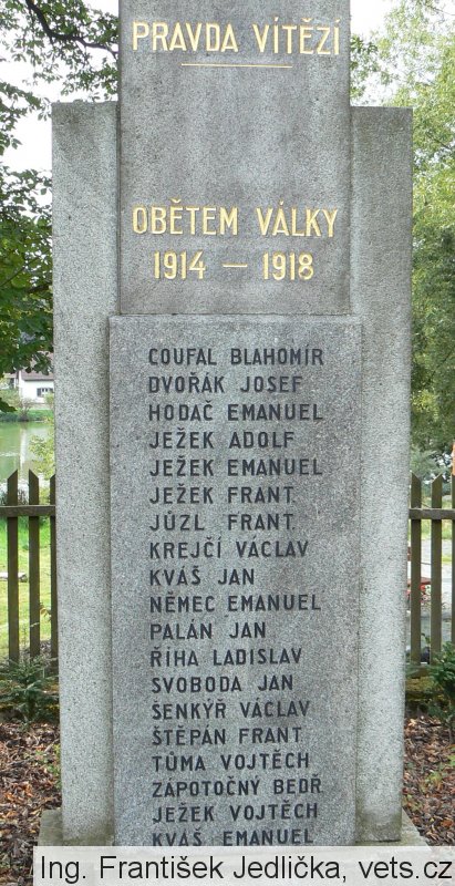 COUFAL BLAHOMÍR, DVOŘÁK JOSEF, HODAČ EMANUEL, JEŽEK ADOLF, JEŽEK EMANUEL, JEŽEK FRANT., JŮZL FRANT., KREJČÍ VÁCLAV, KVÁŠ JAN, NĚMEC EMANUEL, PALÁN JAN, ŘÍHA LADISLAV, SVOBODA JAN, ŠENKÝŘ VÁCLAV, ŠTĚPÁN FRANT., TŮMA VOJTĚCH, ZÁPOTOČNÝ BEDŘ., JEŽEK VOJTĚCH, KVÁŠ EMANUEL
