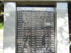 KYLOUŠEK JAK. *1891, KYLOUŠEK FR. *1880, KYLOUŠEK JOS. *1881, KYLOUŠEK PETR *1887, LÁR FR. *1898, LUKEŠ AL. *1881, LUKEŠ AL. *1885, MACH PETR *1890, MACH PETR *1893, MACH VIL. *1873, MAKOVEC FR. *1867, MARTINEC V. *1882, MATĚJEC JAN *1883, MAŠEK JOS. *1894, MEDEK JAN *1892, MEDEK JOS. *1894, MEDEK JIND. *1896, NOVOTNÝ FR. *1896, PASTOREK AL. *1880, PEŠTA JOS. *1896, PLÍVA FR. *1884, PLÍVA JOS. *1887, PLÍVA PETR *1883, SALABA FR. *1887, SŮVA RUD. *1888, SYROVÁTKA PAV. *1884, SYROVÁTKA RUD. *1894, ŠPŮR JOS. *1881, TREPERA ANT. *1884, TŮMA CEL. *1892, VACÁTKO JOS. *1878, VESELKA FR. *1892, PASTOREK JOS. *1893, BURIÁNEK AL. *1877