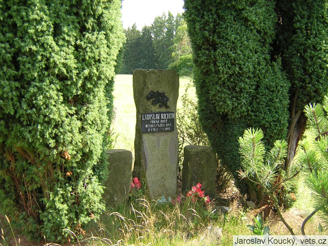 …..Němci se 3. května do Chuchelny nedostali. Při zátahu na povstalce v lese však chytili studenta ze Semil Ladislava Richtra. Objevili u něj zbraň a v polích vedle lesa ho bez milosti popravili.
