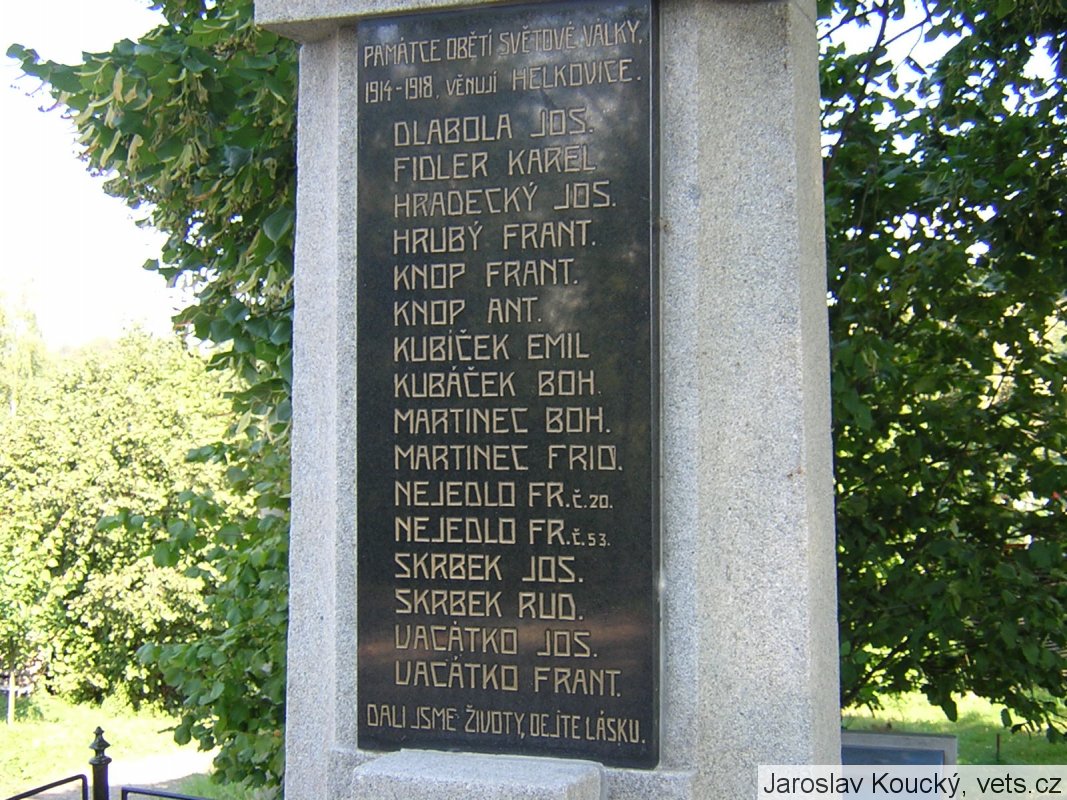 Umístění: Helkovice, východní část obce, u silnice, cyklotrasa č. 4173Nápis: