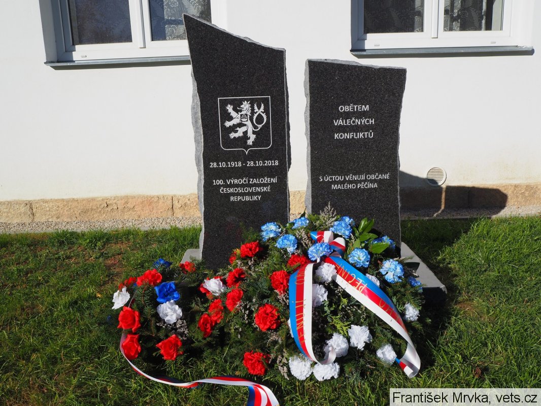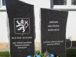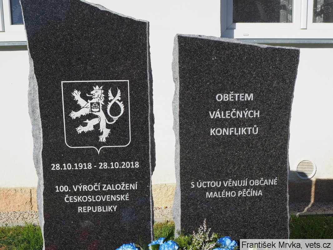 Umístění: Malý Pěčín, začátek obce po levé straně, před budovou bývalé školy č.p. 30Nápis: