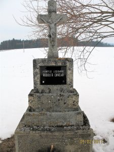 Umístění: Malý Pěčín, asi 500m před vesnicí po levé straně silnice z Dačic do Malého PěčínaNápis: