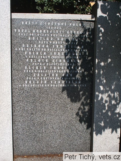 "Dne 25. dubna v parku u sv.Floriana byl vykopán hrob pro zemřelého ruského vojína, který byl v bojích o hlavní město Moravy Brno těžce raněn a sanitním autem odvážen do zázemí. Avšak cestou zemřel. Jeho posledním přáním bylo, aby byl pochován tam, kde zemře. Tak se i stalo... byl pochován tak jak předpisuje služební vojenský řád ruské armády..." Zemřelý hrdina se jmenoval Pavel Andrejevič Andrejev, bylo mu 30 let, na frontě si pobyl 3 roky. Byl mechanik a tankista. Pocházel z Novgorodské oblasti Mošenský rajon ze sela Falolejevo"