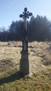 Umístění: Haklovy Dvory, na jižním konci části s názvem Samoty, na kraji pastviny, proti čp. 2025.Nápis: