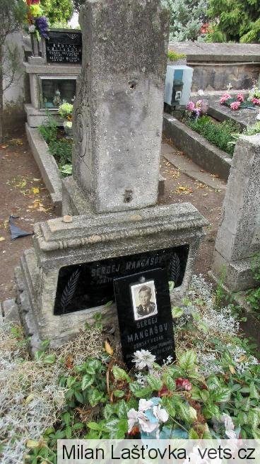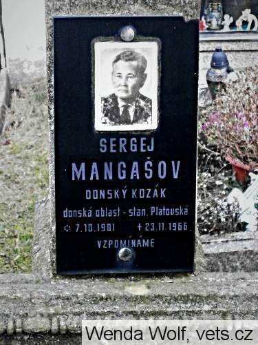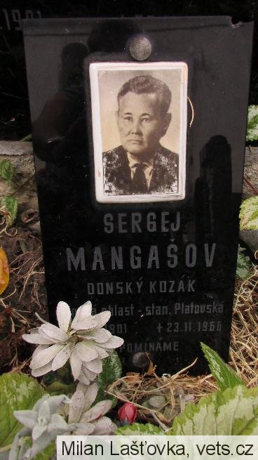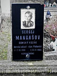 Sergej Mangašov zemřel náhle 23. 11. 1966 ve věku šedesáti pěti let a pohřben je na malém hřbitově u kostela sv. Barbory v Dubici-Dubičkách hned za branou, vlevo při hlavní cestě proti kostelu. Náhrobní deska připevněná na starém pískovcovém soklu snad ještě z 19. století, napovídá, že Sergej byl hrdý na to, že je donským kozákem a nikdy na svůj původ nezapomněl.