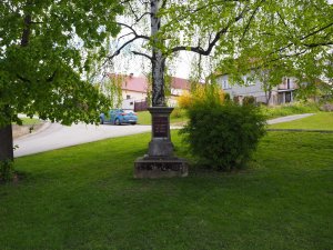 Umístění: Staré Hodějovice, Na Návsi, trojúhelník mezi dvěma silnicemiNápis: