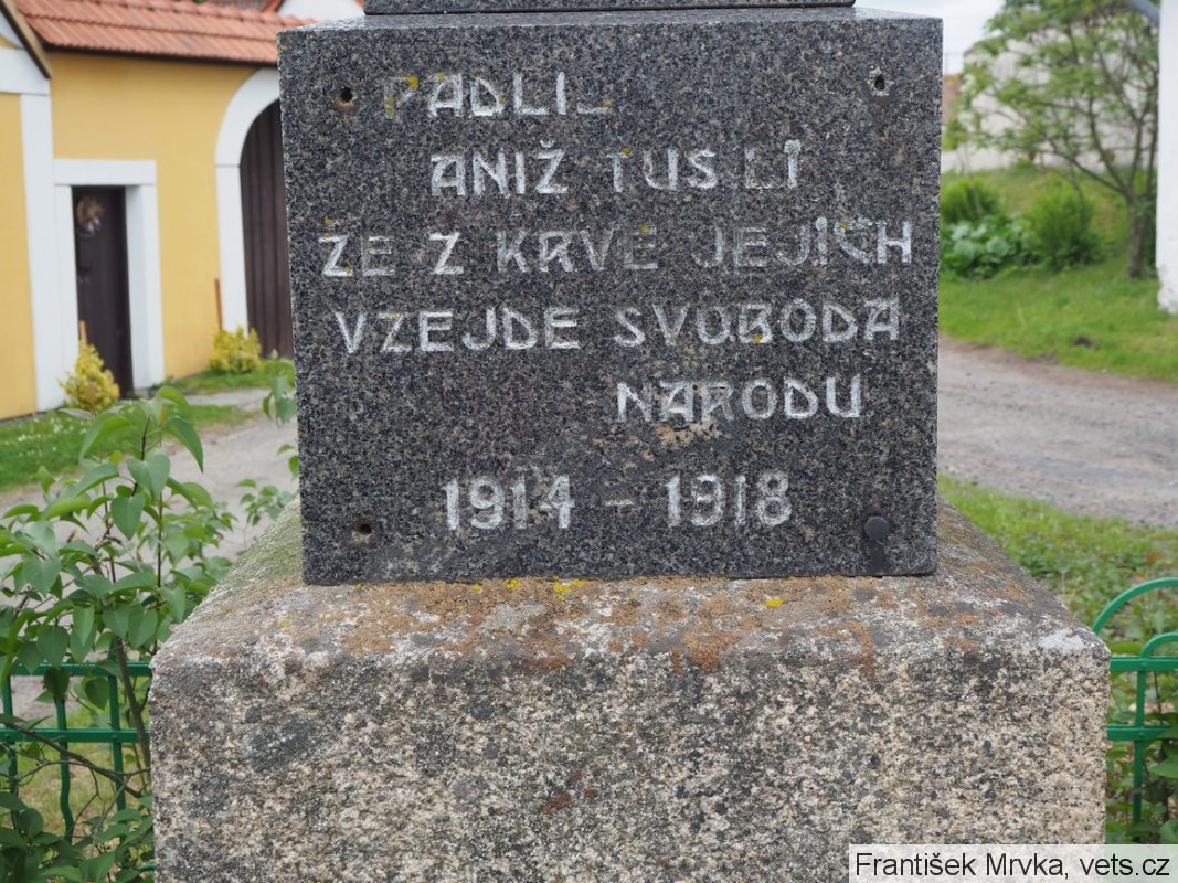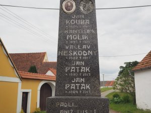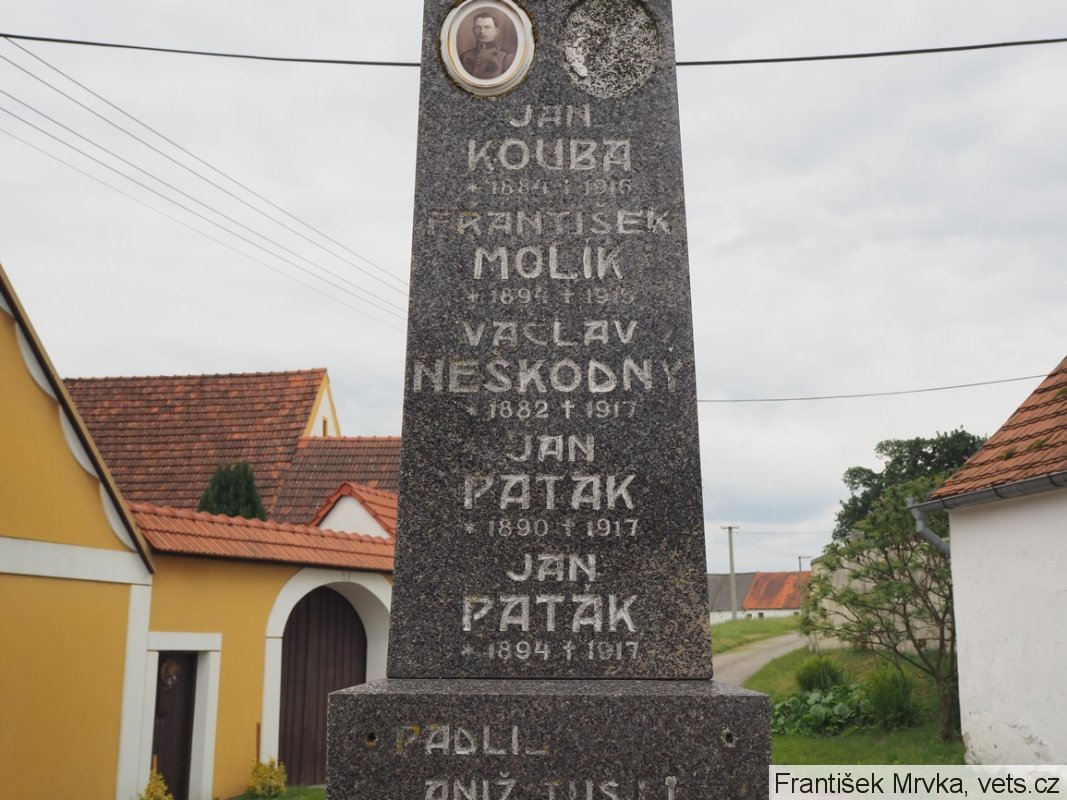 Jan Kouba je uveden i na pomníku Obětem I. svět. války na návsi u kostela