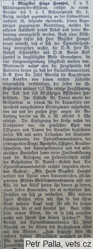 c.a k. vojenský lékárnický asistent, zemřel na zápal plic a srdeční selhání