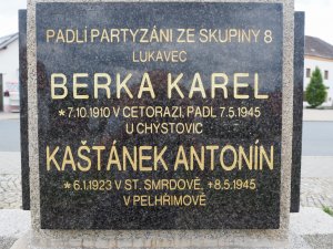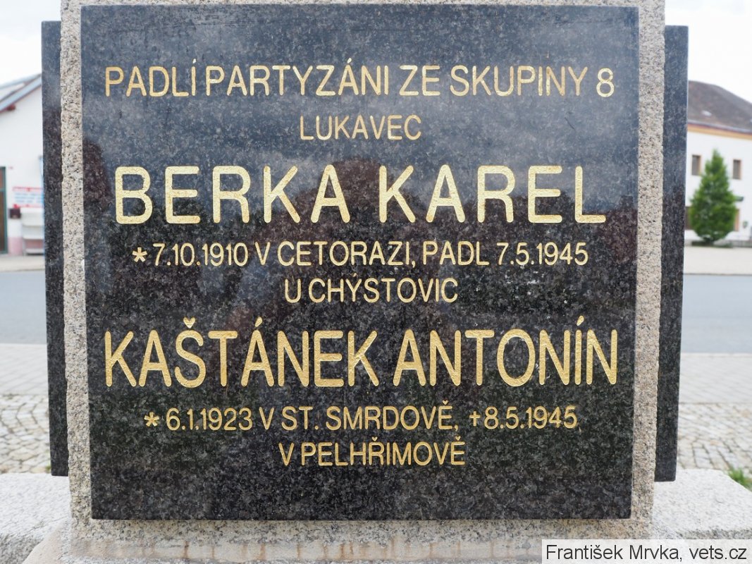 (obec Čáslavsko bezprostředně sousedí s obcí Lukavec a v současnosti patří do stejného okresu – Pelhřimova; téměř jistě jde o shodu jmen na pomníku a v databázi VHA.