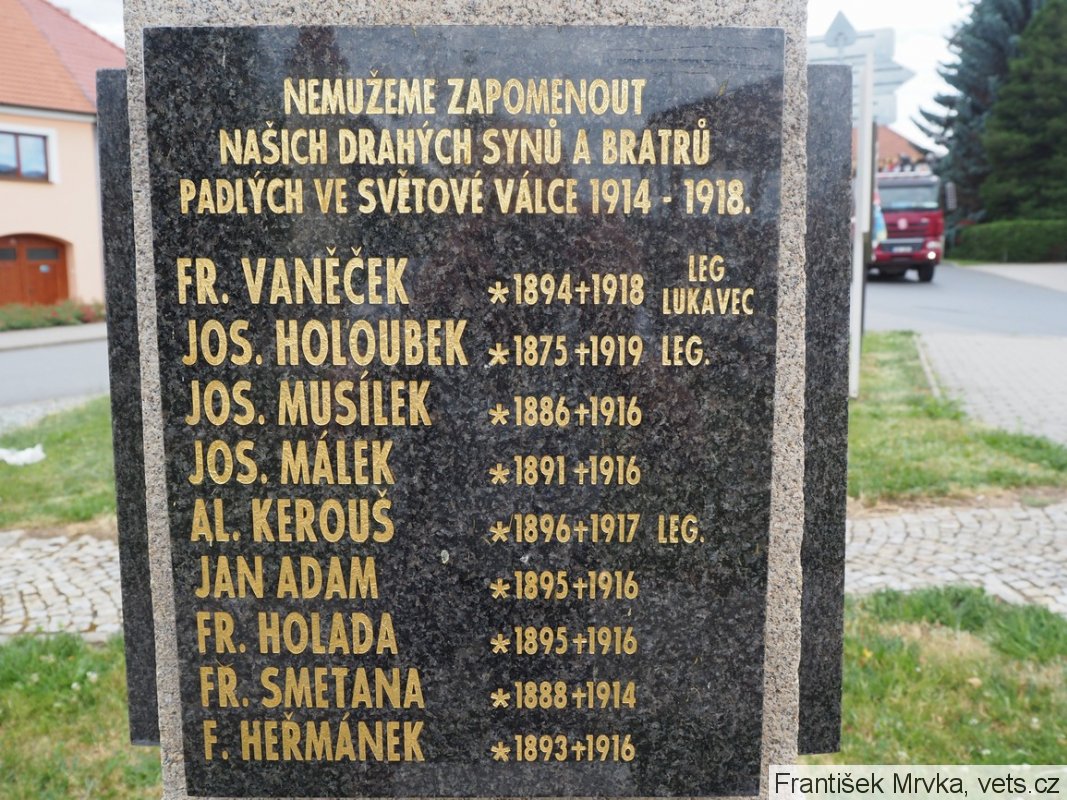 FR. VANĚČEK *1894 +1918 LEG. LUKAVEC