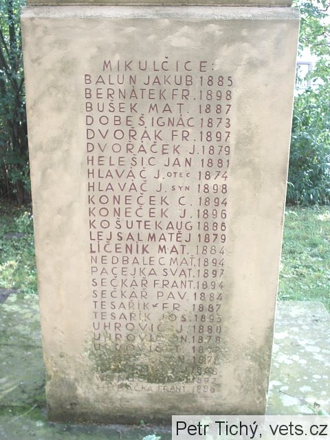 Umístění: Mikulčice, hřbitov, vlevo u brányNápis: