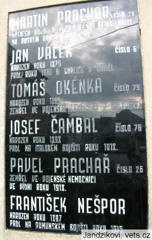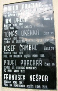 JOSEF ČAMBAL ČÍSLO 76 NAROZEN ROKU 1898 PADL NA ITALSKÉM BOJIŠTI ROKU 1918.,