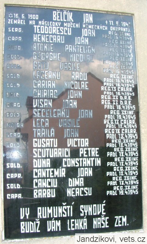 *16. 6. 1900 BĚLČÍK JAN +11. 9. 1947 ZEMŘEL NA NÁSLEDKY MUČENÍ NĚMECKÝCH OKUPANTŮ.,