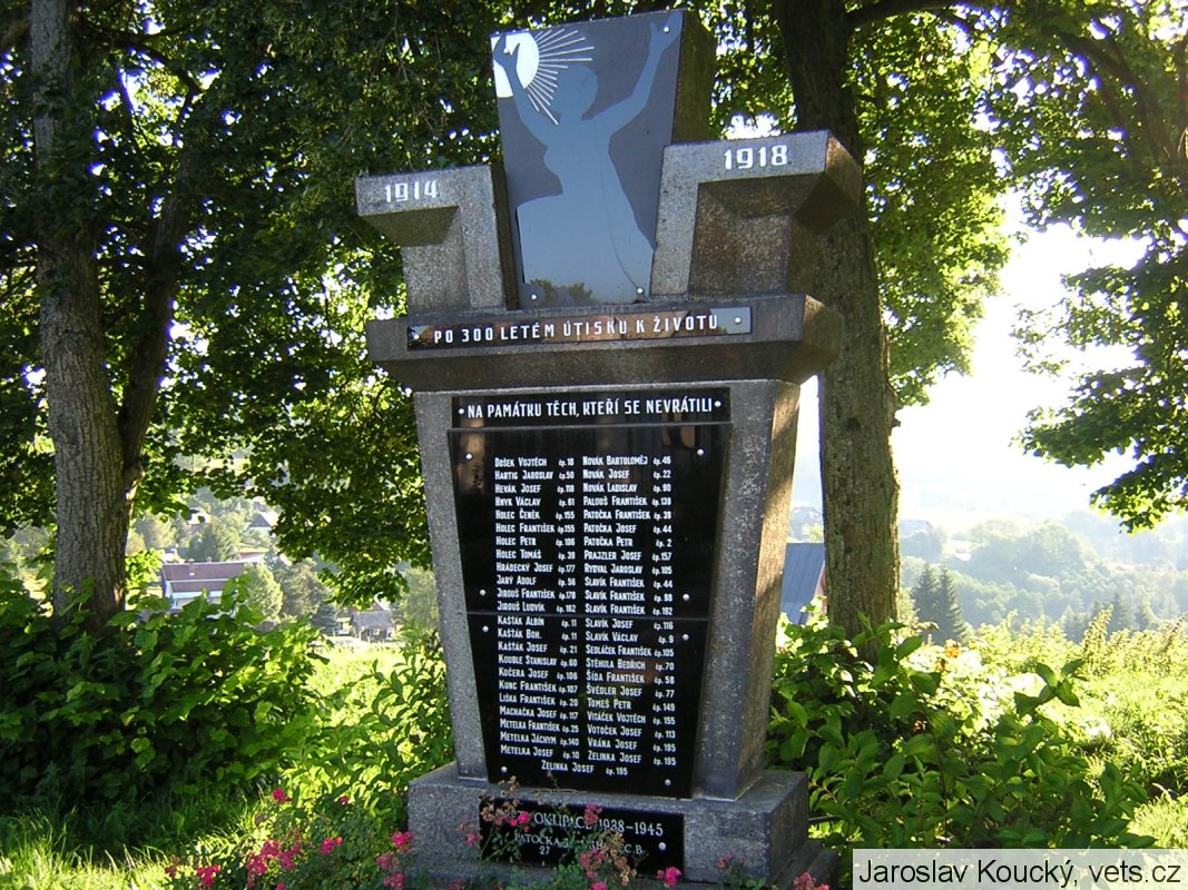 Zhotovil kameník J. Hlaváček z Turnova, pomník slavnostně odhalen 9.9.1923. Po roce 1945 doplněna deska se jmény obětí 2. světové války.