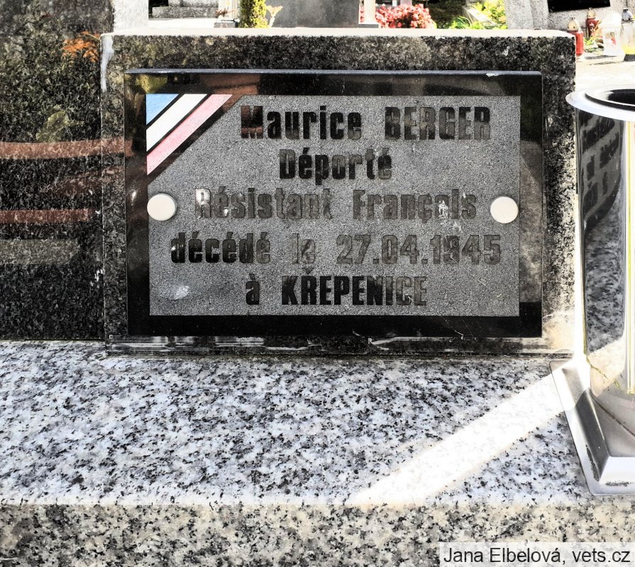 Berger Maurice: *3.3.1901 Paříž, Francie. Od r. 1926 služba u četnictva. Připojil se k organizaci vojenského odboje (Résistance de ľArmeé). Zatčen 2.3.1944. Odeslán do Osvětimi, přemístěn do Buchenwaldu a následně do Flossenbürgu. Zemřel v KT v Křepenicích, nejprve pochován na statku JS Hof, který sloužil ako tábor pro deportované. Poblíž, u druhé řady jedlí, měl být pochován Fernand Gognet, zemřel 12.1.1945.