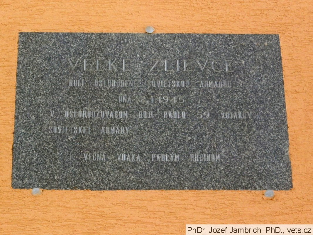 Umístění: Veľké Zlievce, na čelnej stene budovy Obecného úradu Veľké Zlievce