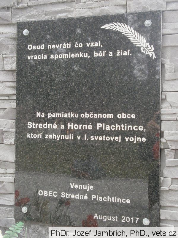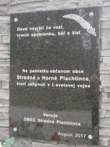 Umístění: Stredné Plachtince, malý park v dolnej časti obce, vpravo pri hlavnej ceste medzi domami č. 19 a 38, odbočka ku kostoluNápis: