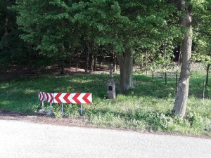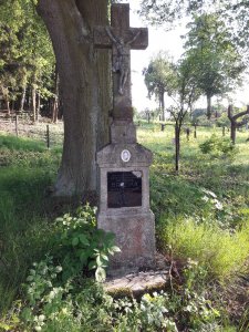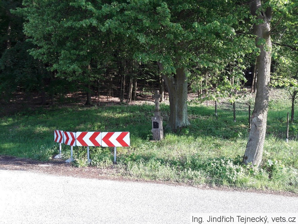 Umístění: Nespery, za cedulí označující počátek obce směrem od Veliše, v pravotočivé ostré zatáčce vlevo u lesa, před mostky přes Polánecký potokNápis: