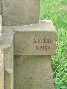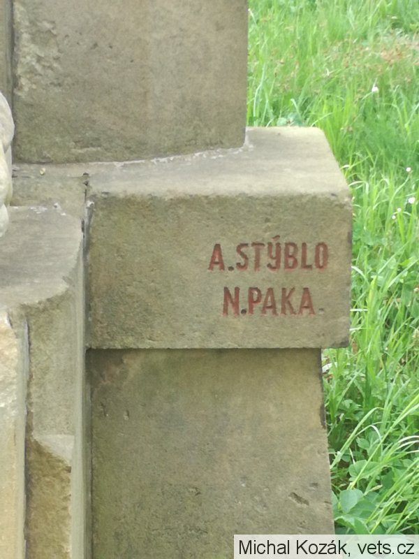 autorem pomníku je A. Stýblo z Nové Paky, ze zadní strany nápis - OBNOVENO 1989.