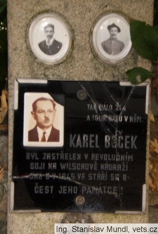 Byl zastřelen v revolučním boji na Wilsonově nádraží dne 6.V.1945 ve stáří 56 r.