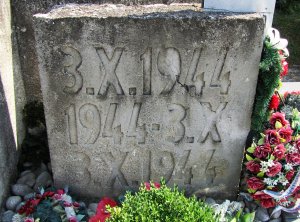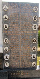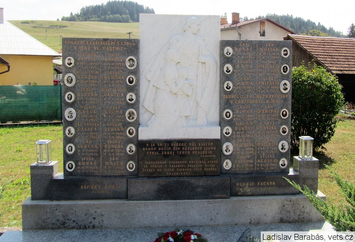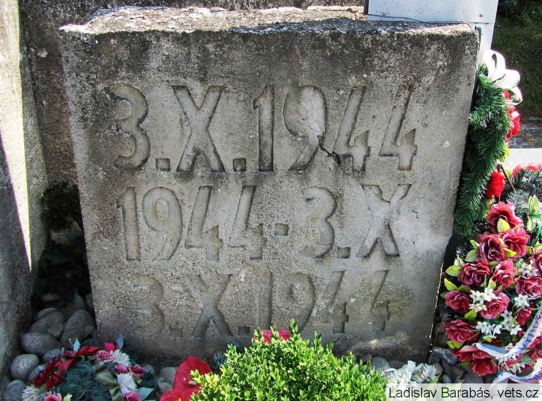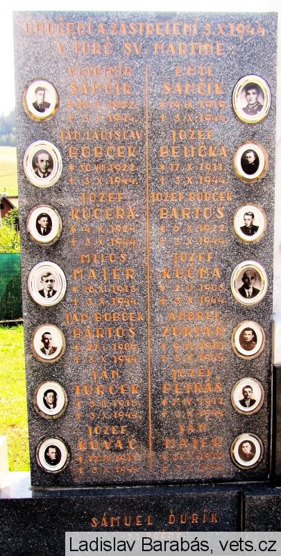 VLADIMÍR SAMČÍK *18.IV.1922. +3.X.1944. EMIL SAMČÍK *14.IX.1919 +3.X.1944. JÁN LADISLAV BOBČEK *30.VIII.1922. +3.X.1944. JOZEF BELIČKA *17.X.1911 +3.X.1944. JOZEF KUČERA *4.X.1924. +3.X.1944. JOZEF BOBČEK BARTOŠ *6.X.1922. +3.X.1944. MILOŠ MAJER *18.XI.1913. +3.X.1944. JOZEF KUČMA *2.II.1903. +3.X.1944. JÁN BOBČEK BARTOŠ *27.I.1906. +3.X.1944. ANDREJ ZURIAN *9.VI.1901. +3.X.1944. JÁN TURČEK *3.II.1915. +3.X.1944. JOZEF PETRÁŠ *7.IV.1911. +3.X.1944. JOZEF KOVÁČ *12.IV.1915. +3.X.1944. JÁN MAJER *31.X.1910. +3.X.1944. SÁMUEL ĎURÍK 71. ROČNÝ
