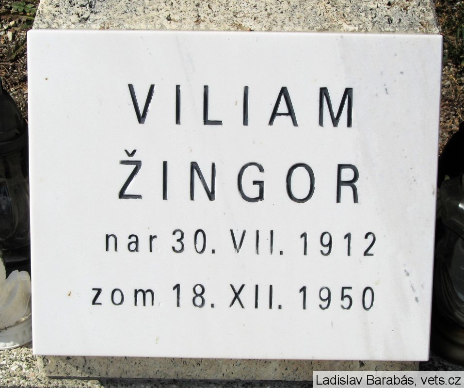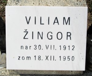 Viliam Žingor (30.7.1912 Bystrička – 18.12.1950 Bratislava) partizánsky veliteľ. Od roku 1939 účastník protifašistického odboja, zhromažďoval a v horách ukrýval zbrane a muníciu, 1941 por. slov. armády na vých. fronte, sabotoval bojové akcie , podnecoval odpor podriadených proti vojne. V júli 1943 nesplnil povolávací rozkaz do slovenskej armády, odišiel do hôr, organizátor a veliteľ partizánskej jednotky. V júli 1944 rokoval s predstaviteľmi ilegálneho hnutia v armáde o vyzbrojení partizánov. Začiatkom augusta 1944 nadviazal spojenie so skupinou P. A. Veličku na Prašivej. Veliteľ slov oddielu 1. čs. part. brigády gen. M. R. Štefánika, neskôr veliteľ 2. čs. part. brigády gen. M. R. Štefánika utvorenej v Sklabini, ktorá operovala najnä v Malej Fatre a v Rajeckej doline. Zúčastnil sa oslobodzovania Martina a Vrútok. Po oslobodení organizátor hnutia protifašistických bojovníkov a partizánov na Slovensku, od roku 1945 člen KSS, v roku 1947 pre nesúhlas s jej politikou zo strany vystúpil. Po februári 1948 prenasledovaný komunistickým režimom, v novembri 1949 bol zatknutý, v roku 1950 po politicky motivovanom súdnom procese odsúdený na trest smrti a popravený. V roku 1968 bol právne a občiansky rehabilitovaný.