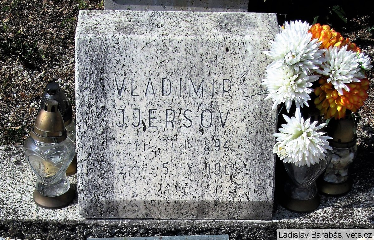 Vladimír Jonovič Jeršov (31.1.1894 Moskva – 9.5.1968 Martin) účastník protifašistického odboja, učiteľ. Od roku 1916 legačný radca v Teheráne, 1917-21 bielogvardejský dôstojník, 1921 emigrant v Turecku, na ostrove Athos, v Paríži, od 1923 v Prahe, od 1927 v Martine, učiteľ hudby a jazykov. Ruské vlastenectvo a slovanské cítenie ho priviedli do ilegálneho protifašistického hnutia, aktívny najmä od roku 1943. Ukrýval sovietskych utečencov z nacistických táborov, pomáhal zakladať RNV, partizánske tábory. Odboj využíval aj jeho jazykové znalosti (okrem ruštiny, češtiny a slovenčiny ovládal aj nemecký, francúzsky a anglický jazyk). Člen štábu 1. čsl. partizánskej brigády M.R. Štefánika, tlmočník a zástupca veliteľa oddielu francúzskych parizánov, zástupca náčelníka štábu mínerského oddielu. Účastník bojov pri Strečne, obrane Turca, v priestore Handlová-Kremnica, v oblasti Krupiny. Po ústupe do hôr v Liptove zajatý a väznený v koncentračnom tábore v Nemecku. Po oslobodení tábora žil krátko v Paríži, neskôr v Martine. V roku 1948 a 1949-53 nespravodlivo väznený, 1951 odsúdený na 6 rokov väzenia, 1969 rehabilitovaný. Vyznamenania: Rad SNP I. tr., Čsl. vojnový kríž 1939, Za chrabrosť pred nepriateľom, Za zásluhy I. st., franc. Vojnový kríž s palmami