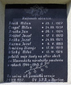 Umístění: Košťany nad Turcom, cintorínNápis: