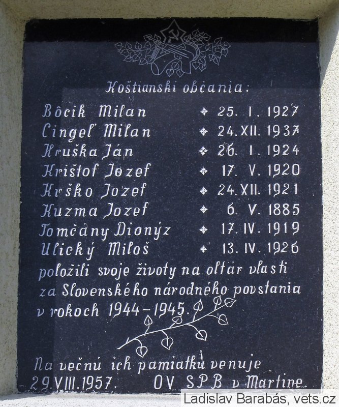Umístění: Košťany nad Turcom, obecný úradNápis: